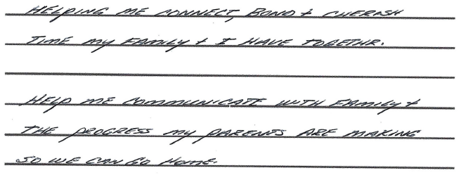 “We truly appreciate your help and the positive environment you provide our families for visitation.”